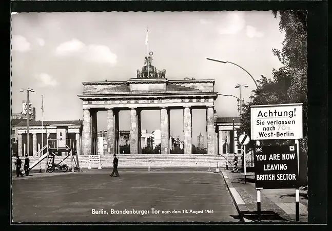 AK Berlin, Partie am Brandenburger Tor mit Mauer