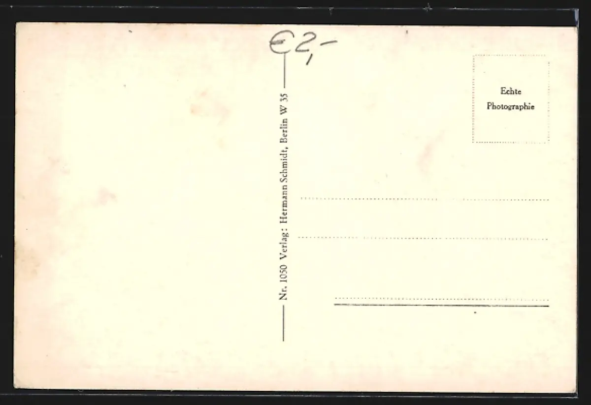 Personenbezogene Daten auf der Rückseite der Karte wurden durch blauen Textmarker unkenntlich gemacht. Die blauen Stellen sind auf die Vorderseite durchgeweicht und wirken sich negativ auf das Postkartenfoto aus