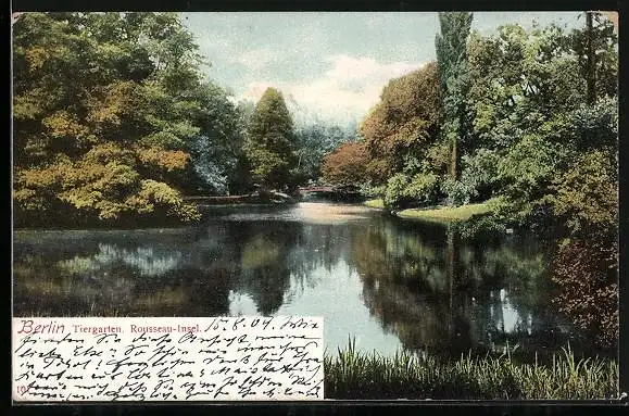 AK Berlin, Partie im Tiergarten, Rousseau-Insel