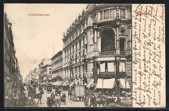 AK Berlin, Partie in der Friedrichstrasse, mit Kutschen