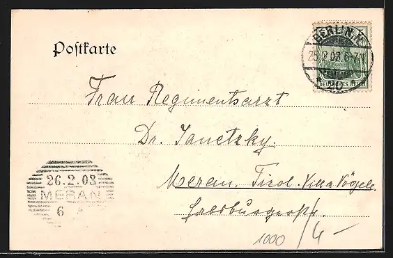 alte Ansichtskarte, gelaufen 1903, Stempelspur, guter Zustand