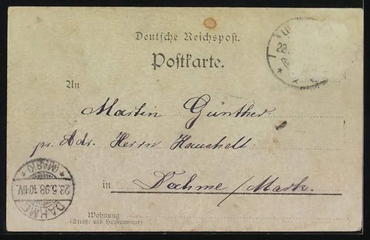 alte Ansichtskarte, gelaufen 1898, Briefmarke entfernt, guter Zustand