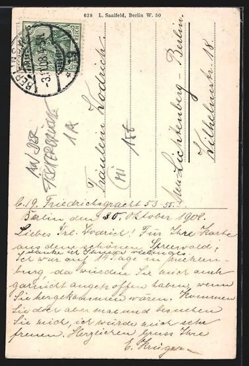 gelaufen 1908, Eckknicke li. oben, guter Zustand