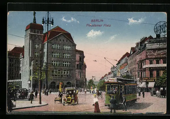 AK Berlin, Potsdamer Platz mit Strassenbahn