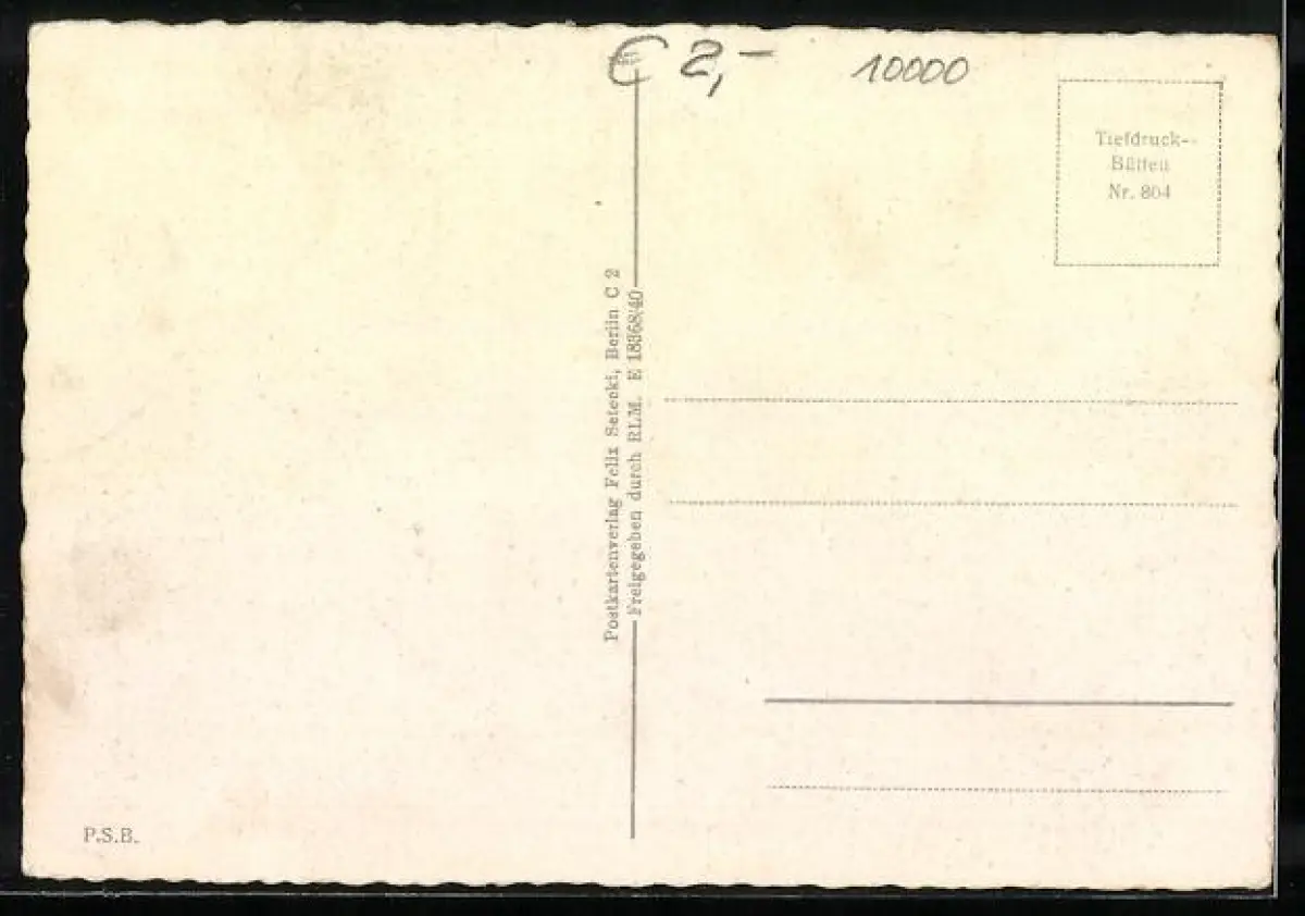 Personenbezogene Daten auf der Rückseite der Karte wurden durch blauen Textmarker unkenntlich gemacht. Die blauen Stellen sind auf die Vorderseite durchgeweicht und wirken sich negativ auf das Postkartenfoto aus