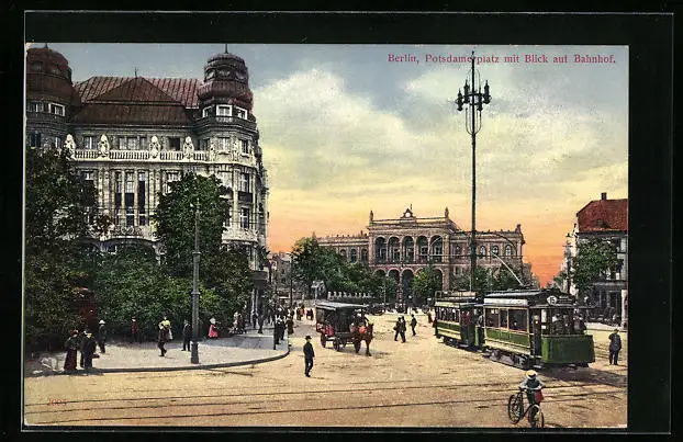 AK Berlin, Potsdamerplatz mit Blick auf Bahnhof u. Strassenbahn