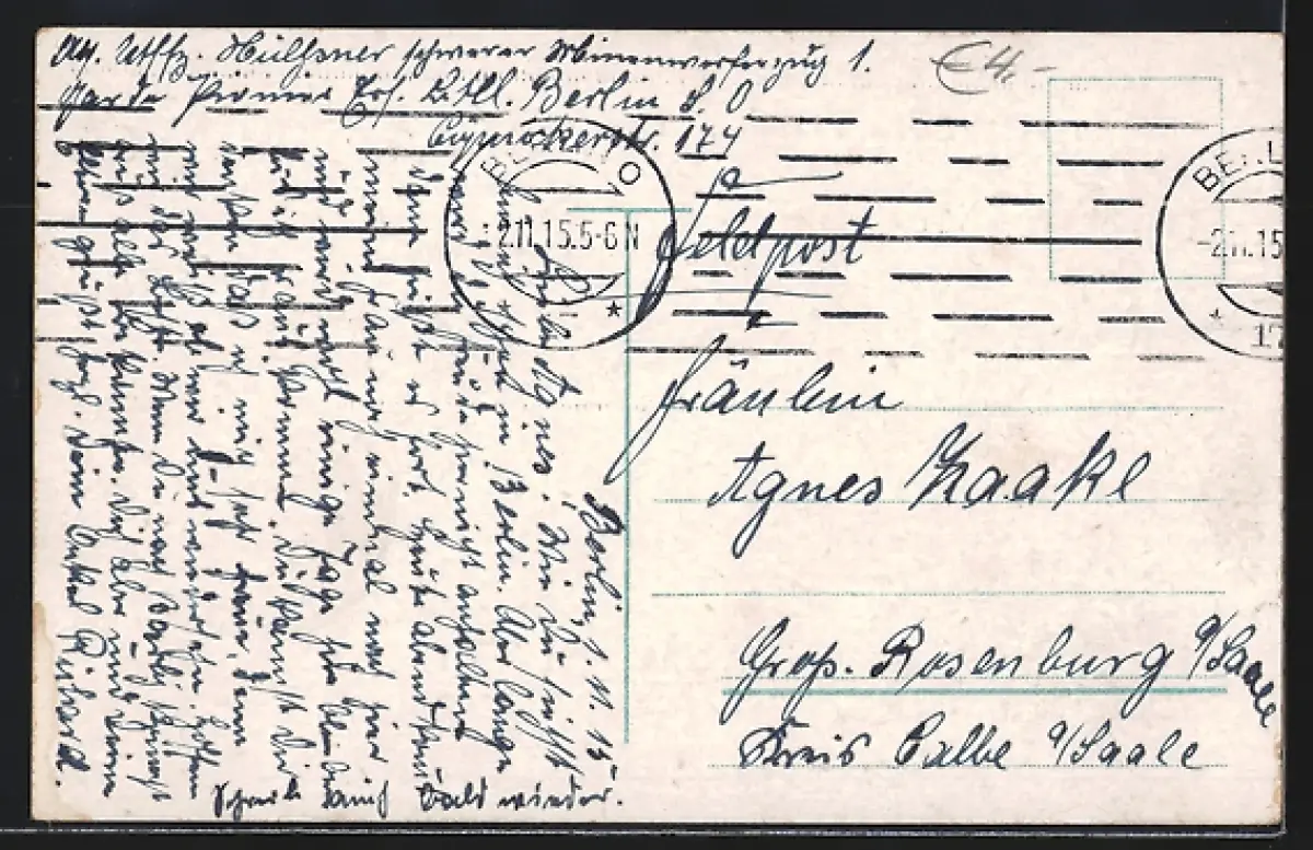 alte Ansichtskarte, gelaufen 1915, Stempelspur, guter Zustand