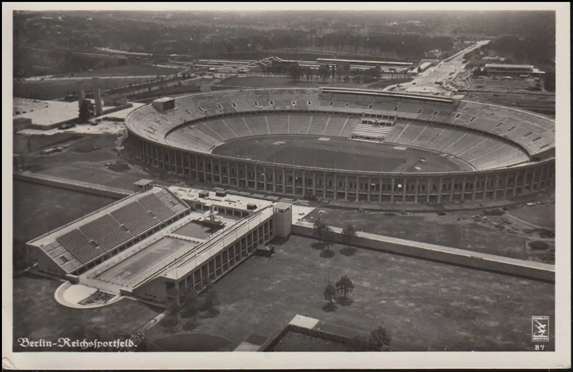 AK Berlin-Reichssportfeld Flugzeugaufnahme B 7, ungebraucht, um 1940