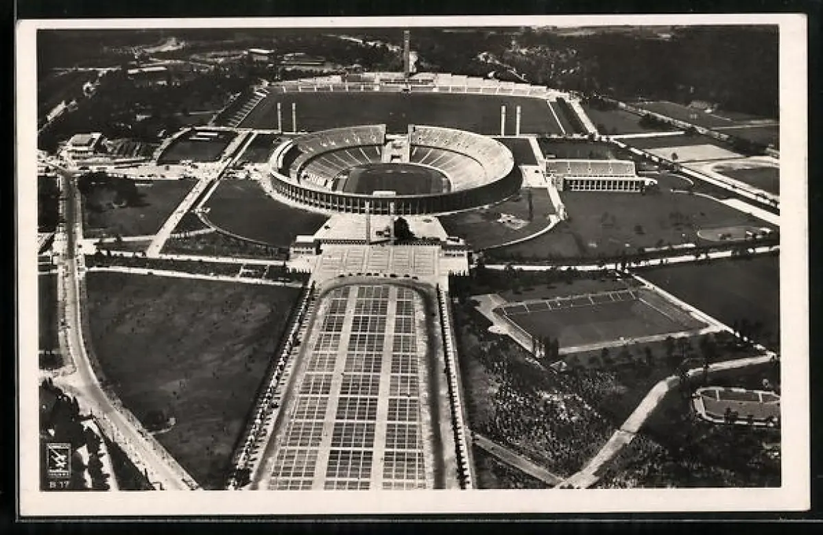 AK Berlin, Reichssportfeld, Gesamtansicht vom Flugzeug aus
