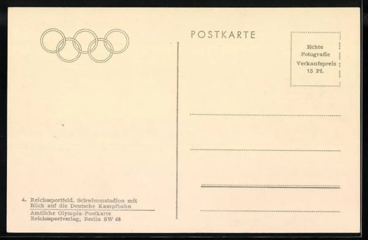 AK Berlin, Reichssportfeld, Schwimmstadion mit Blick auf das Olympiastadion
