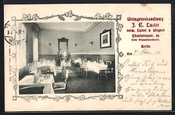 AK Berlin, Restaurant der Weingrosshandlung J. C. Luther, Charlottenstrassse 49