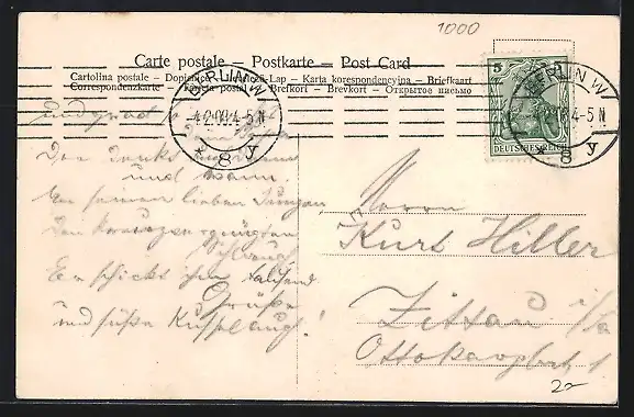 alte Ansichtskarte, gelaufen, Stempelspur, guter Zustand