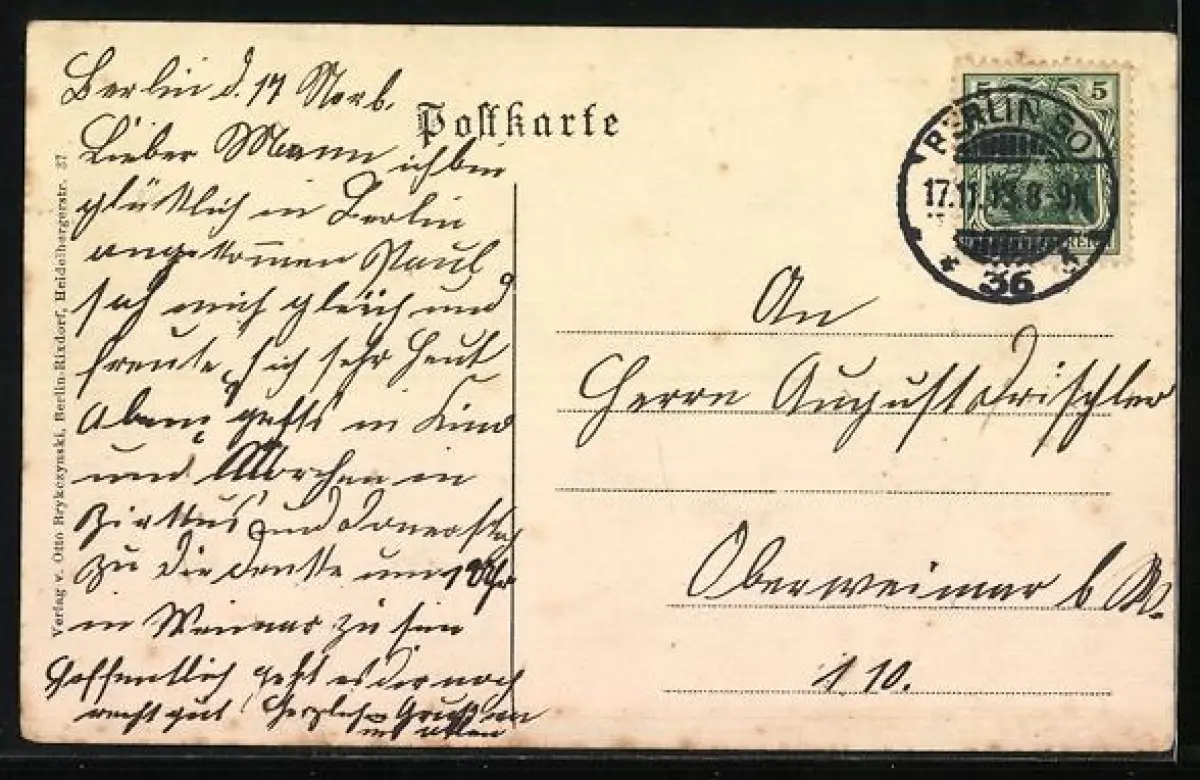 alte Ansichtskarte, gelaufen 1913, Stempelspur, Eckknick re. oben, guter Zustand