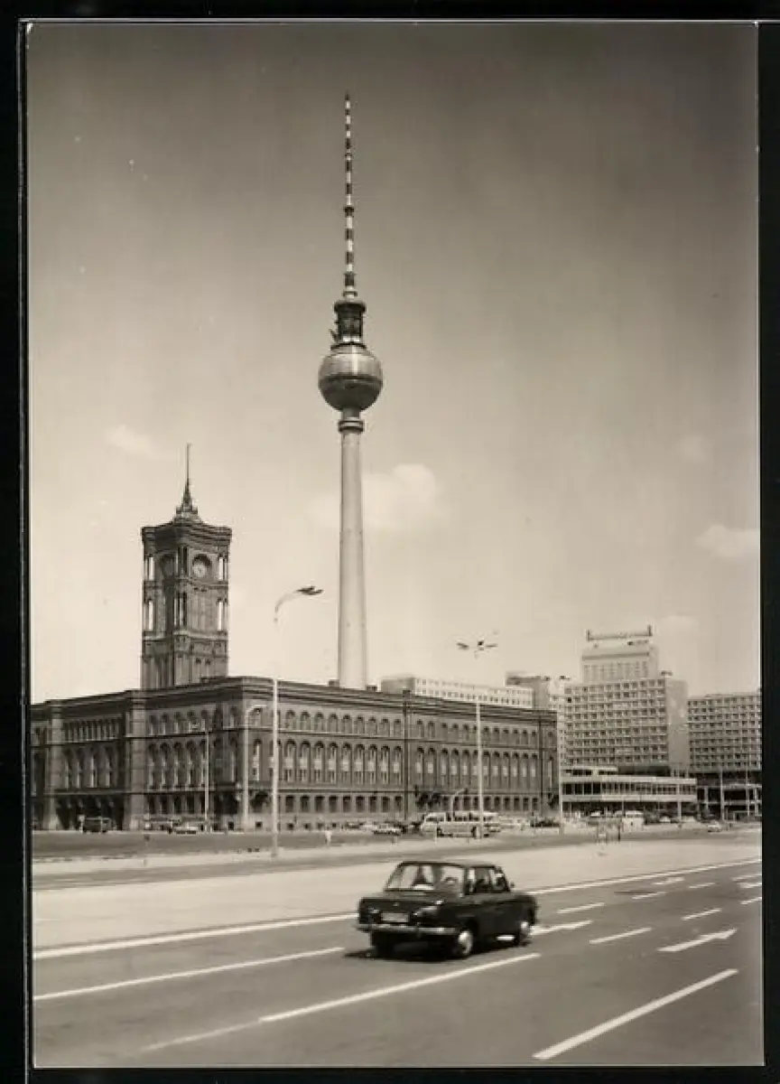 AK Berlin, Rotes Rathaus mit Fernsehturm