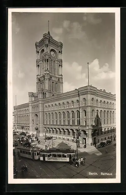 AK Berlin, Rotes Rathaus mit Strassenbahn