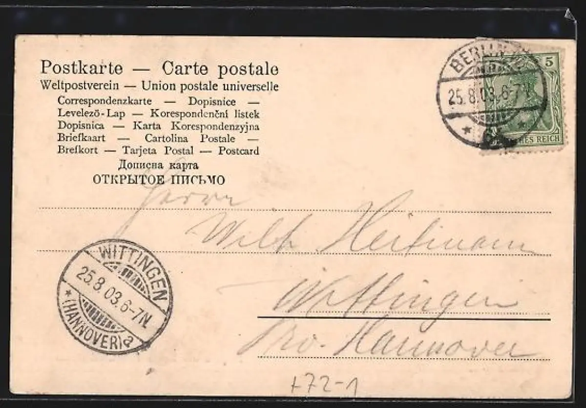 alte Ansichtskarte, gelaufen 1903, Stempelspur, guter Zustand