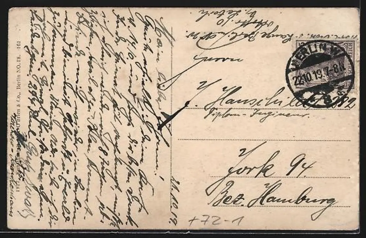 alte Ansichtskarte, gelaufen 1919, Eckknick oben links, guter Zustand
