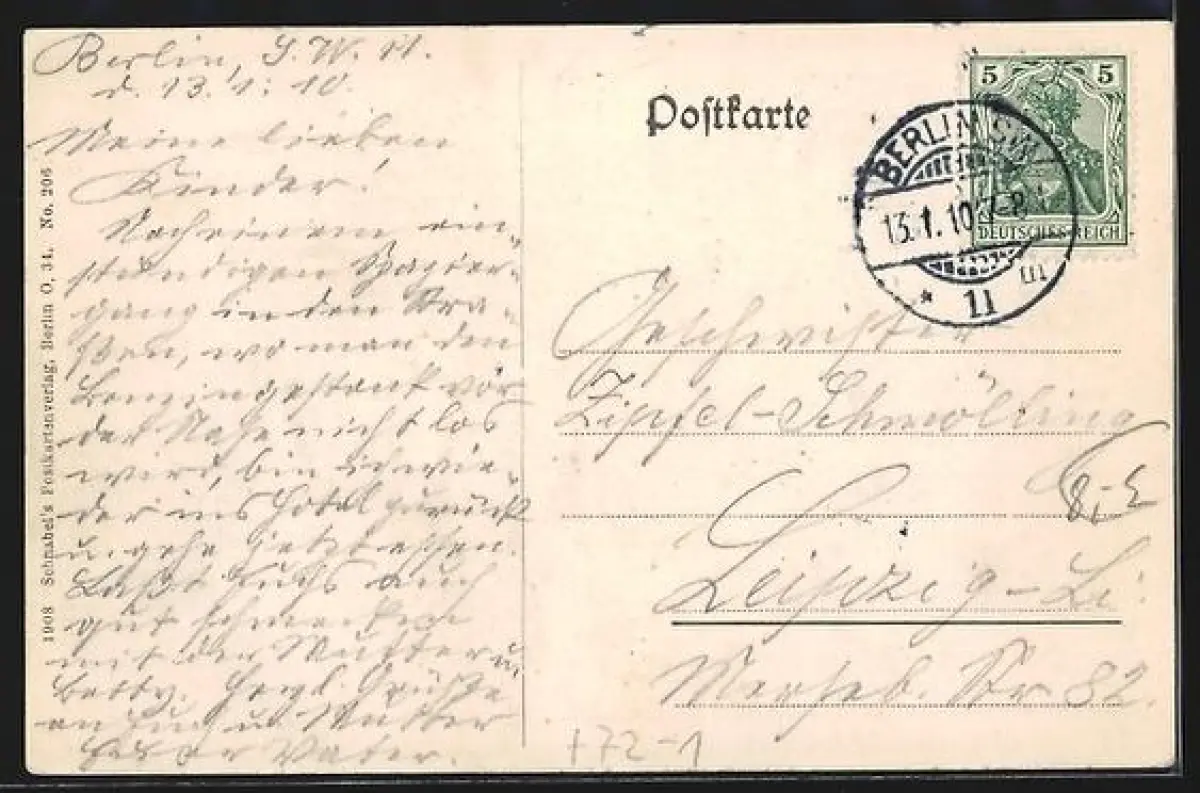 alte Ansichtskarte, gelaufen 1910, Stempelspur, guter Zustand
