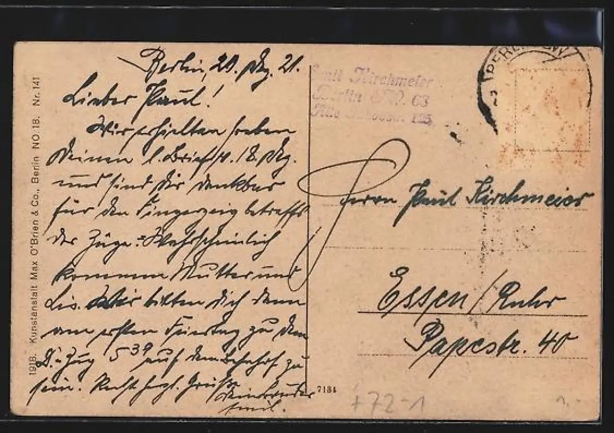 alte Ansichtskarte, gelaufen 1921, Briefmarke entfernt, Stempelspur, Eckknicke links unten und rechts oben, guter Zustand