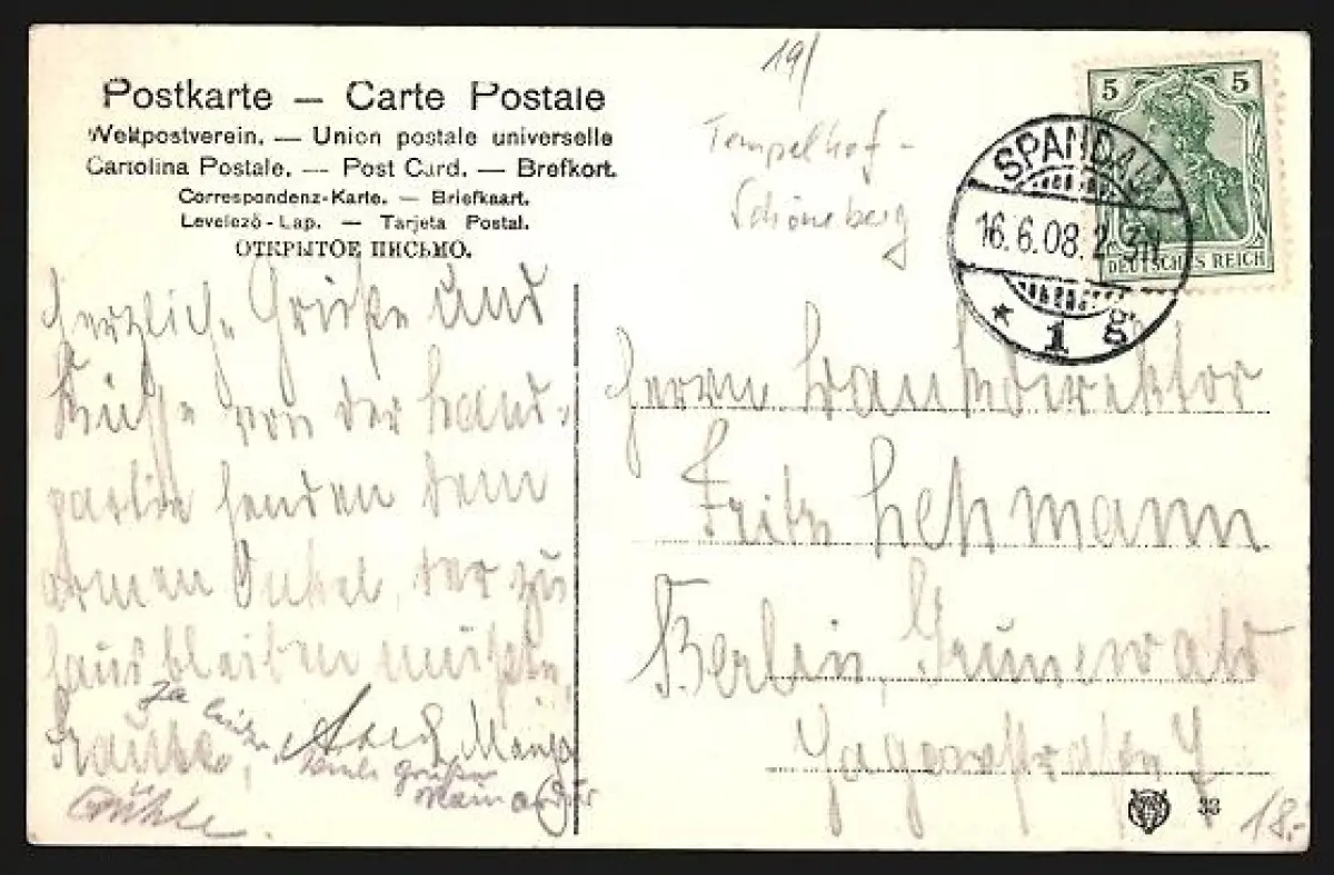 alte Ansichtskarte, gelaufen 1908, guter Zustand