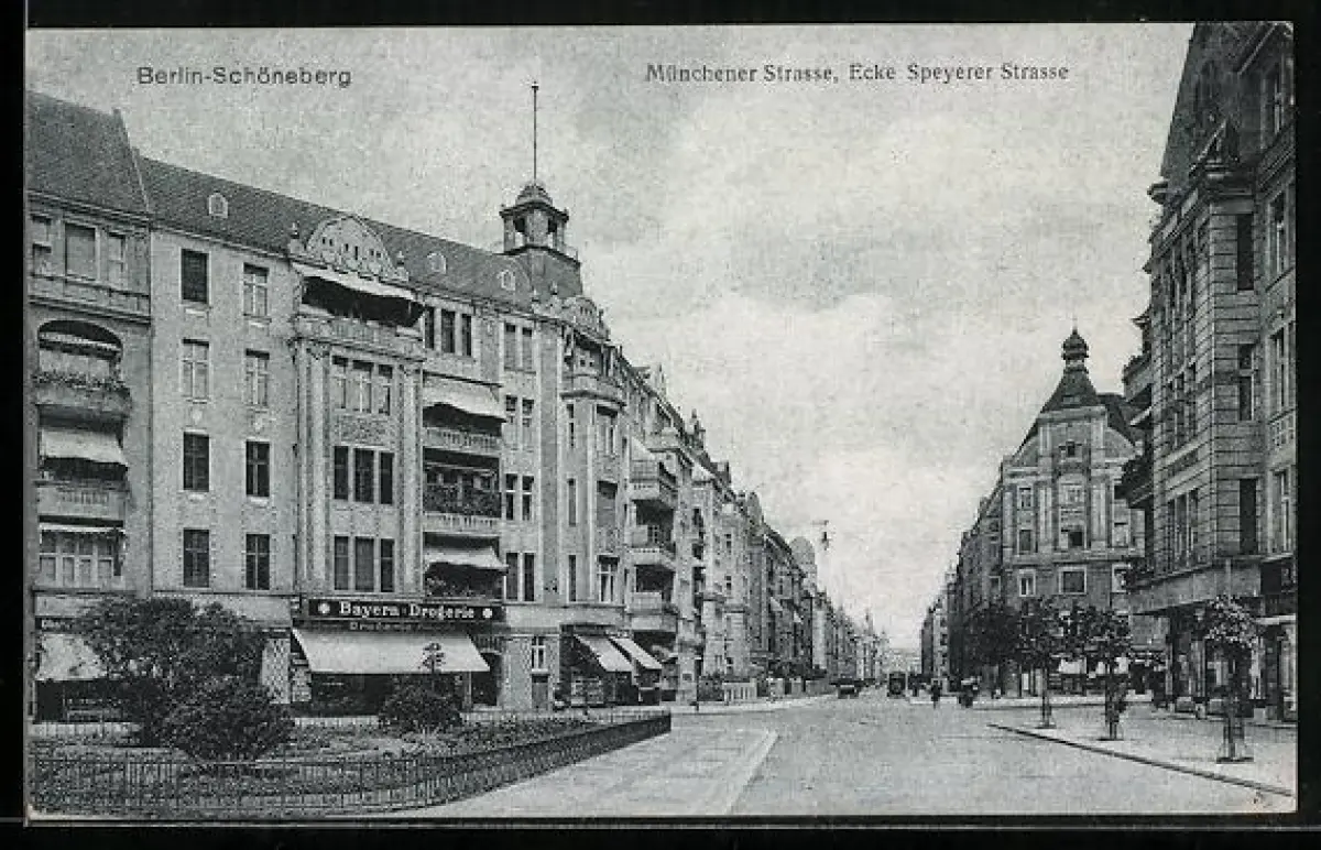 AK Berlin-Schöneberg, Münchener Strasse Ecke Speyerer Strasse, Bayern-Drogerie