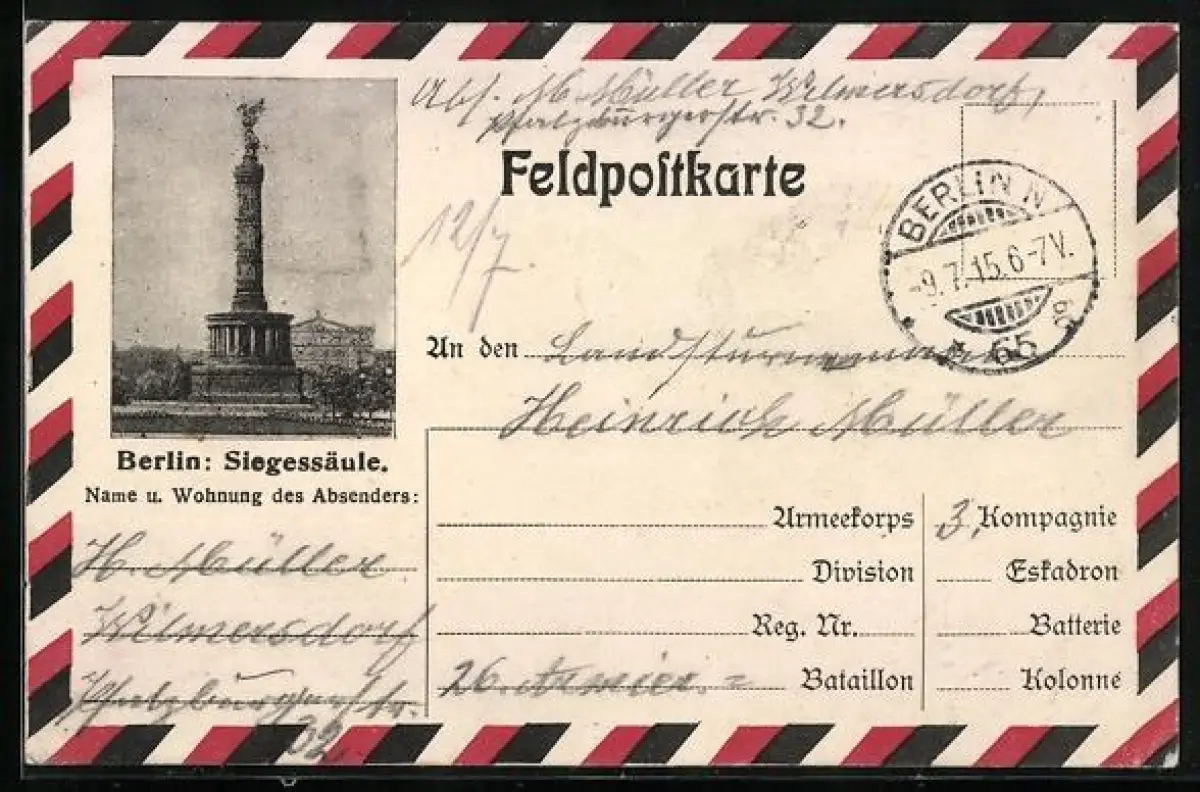 AK Berlin, Siegessäule, Feldpostkarte, Rahmen mit Nationalfarben