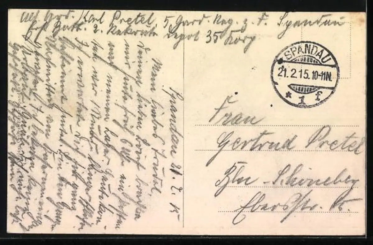 gelaufen 1915, Eckknick li. unten, guter Zustand