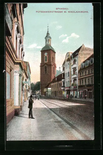 AK Berlin-Spandau, Potsdamerstrasse mit Nikolaikirche