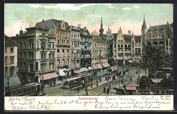 AK Berlin, Spittelmarkt, Blick auf Strassenbahnhaltestelle