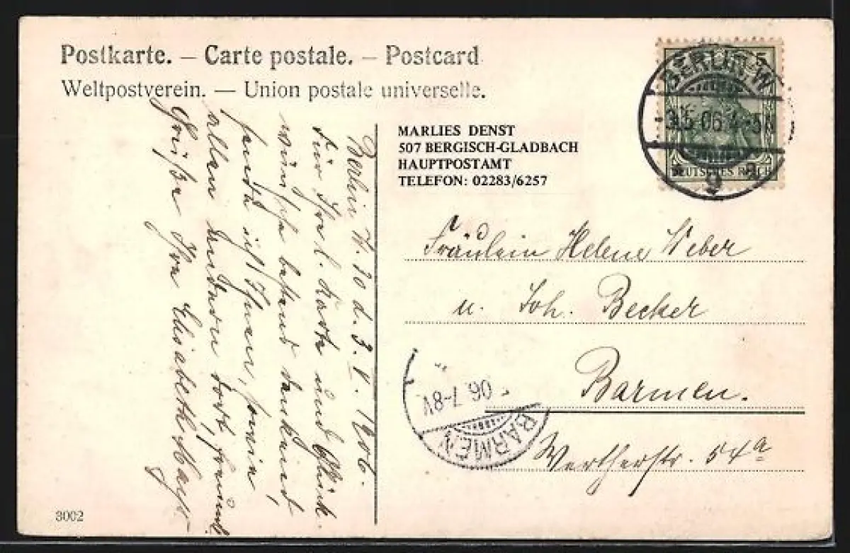 alte Ansichtskarte, gelaufen 1906, guter Zustand