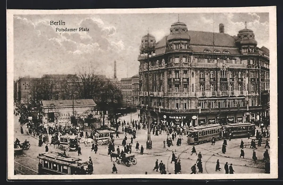 AK Berlin, Stadtleben am Potsdamer Platz, Strassenbahn