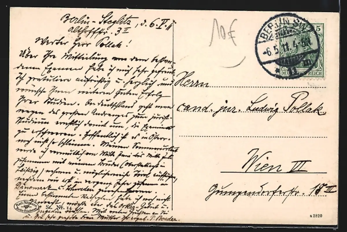 gelaufen 1911, Eckknick li. oben, guter Zustand