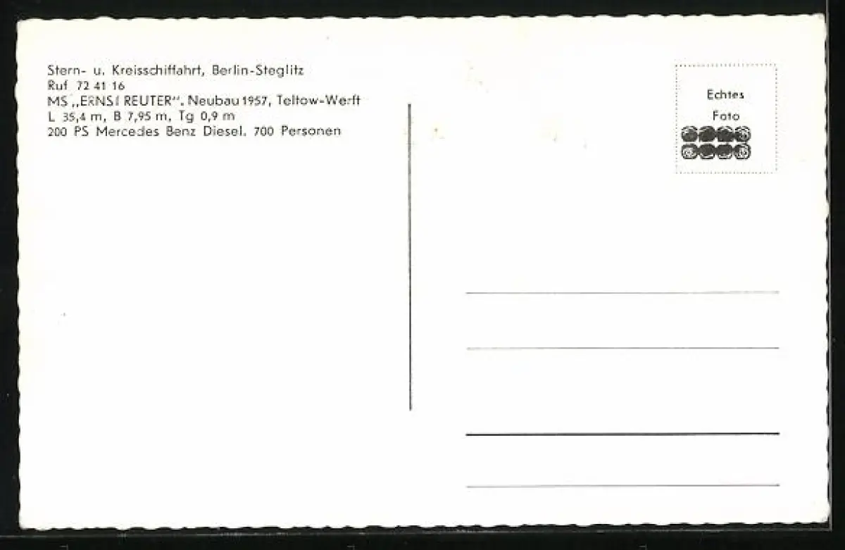 AK Berlin-Steglitz, Passagier-Binnenschiff Ernst Reuter von 1957 der Stern- und Kreisschiffahrt