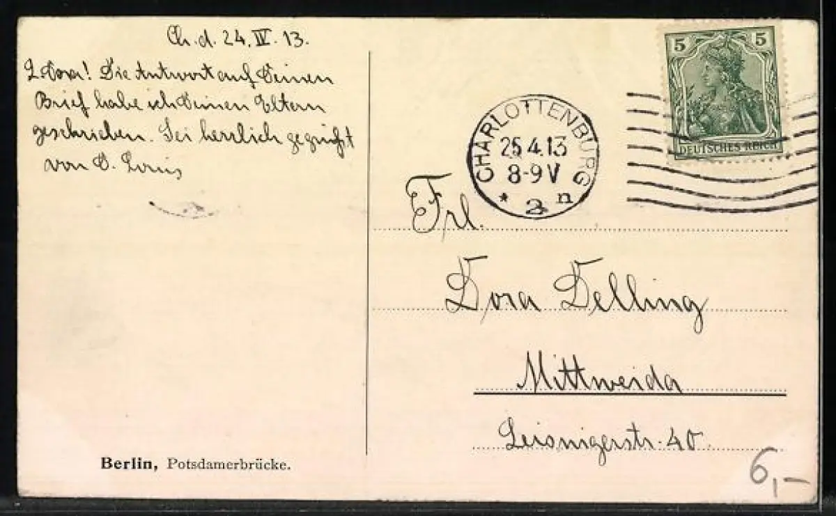 alte Ansichtskarte, gelaufen 1913, guter Zustand