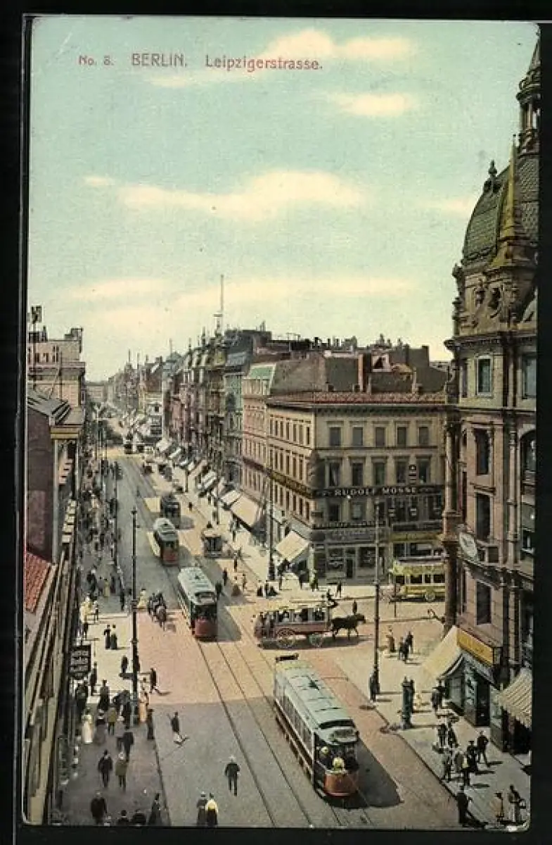 AK Berlin, Strassenbahnen in der Leipzigerstrasse