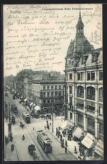 AK Berlin, Strassenbahnen in der Leipzigerstrasse Ecke Friedrichstrasse