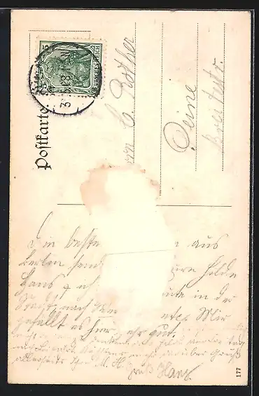 alte Ansichtskarte, gelaufen 1908, rückseitig Oberflächenschaden, guter Zustand