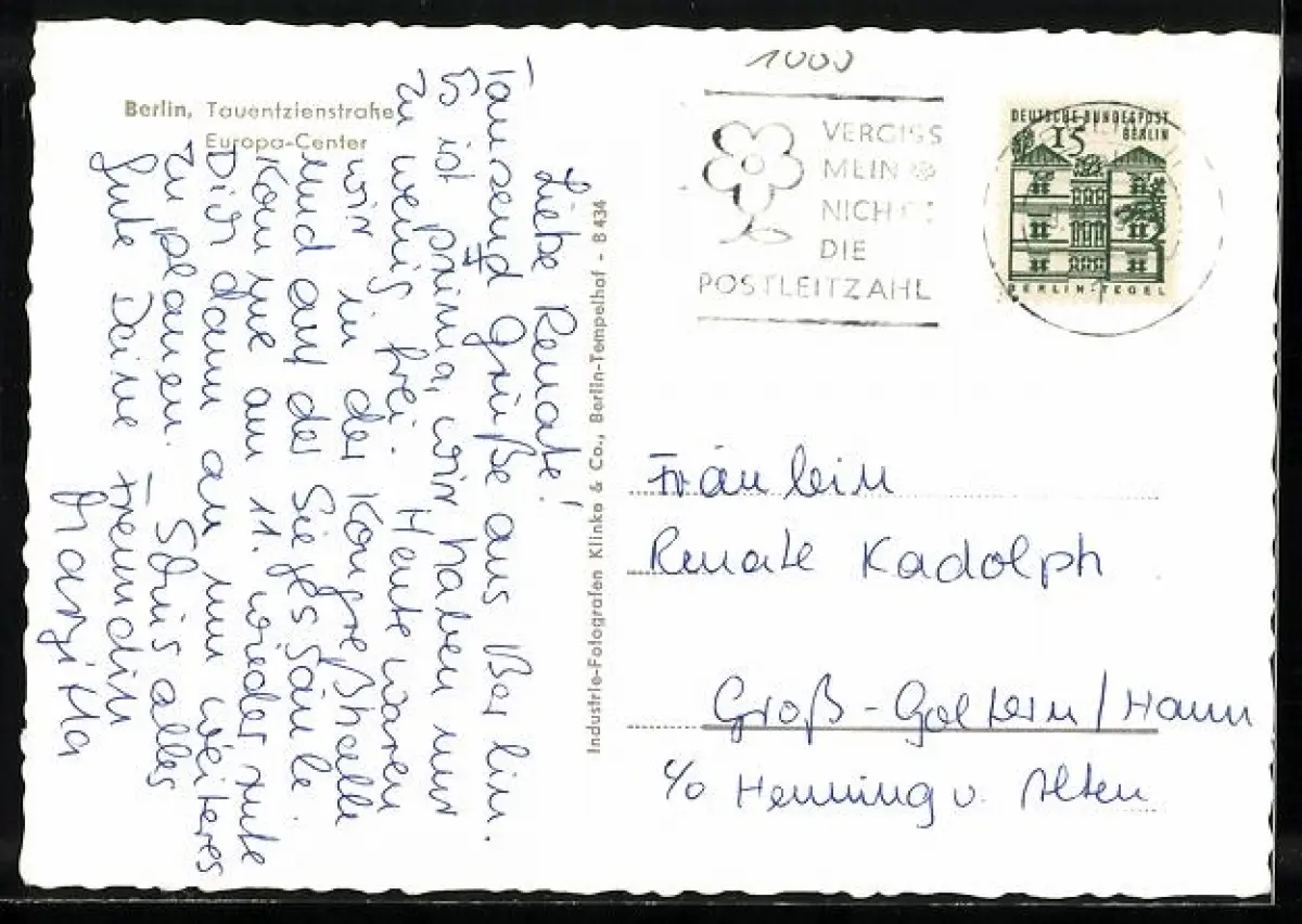 AK Berlin, Tauentzienstrasse mit Europa-Center am Abend
