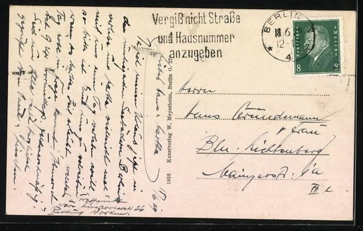 alte Ansichtskarte, gelaufen 1929, Stempelspur, guter Zustand