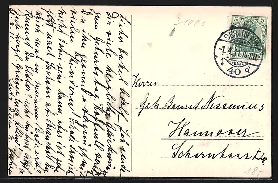 alte Ansichtskarte, gelaufen 1911, Stempelspur, guter Zustand