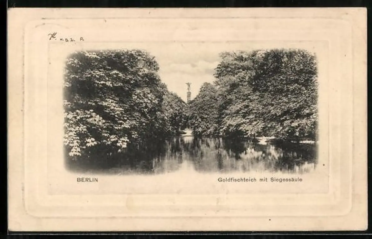 AK Berlin-Tiergarten, Goldfischteich, Siegessäule