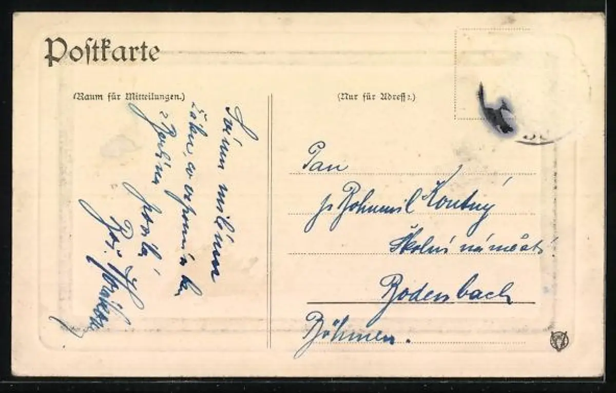 alte Ansichtskarte, gelaufen, Briefmarke entfernt, rückseitig Oberflächenschaden, guter Zustand