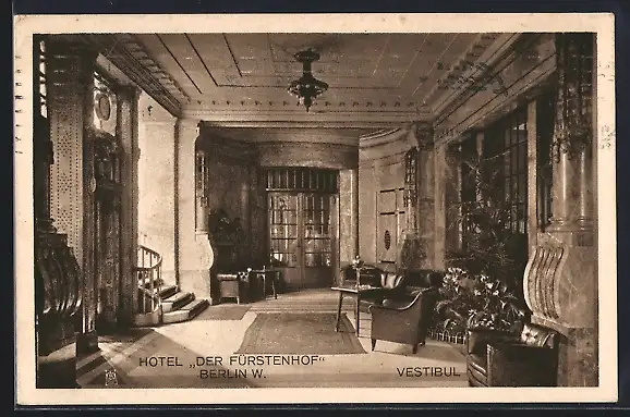 AK Berlin-Tiergarten, Hotel Der Fürstenhof, Potsdamer Platz, Vestibul