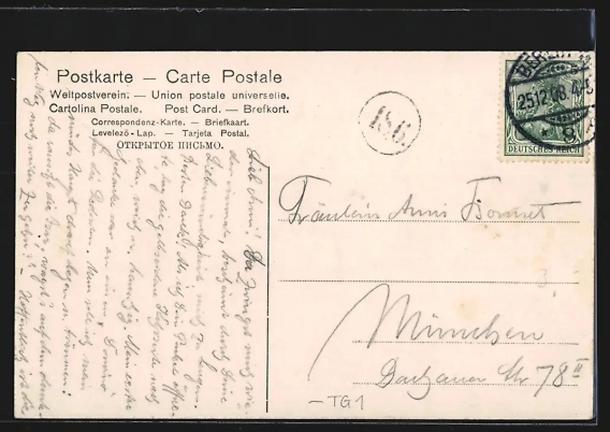 alte Ansichtskarte, gelaufen 1908, Stempelspur, guter Zustand
