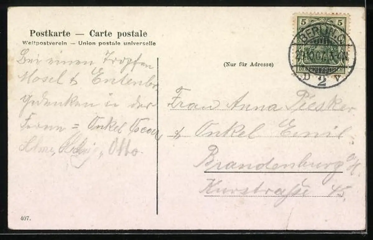 alte Ansichtskarte, gelaufen 1907, guter Zustand