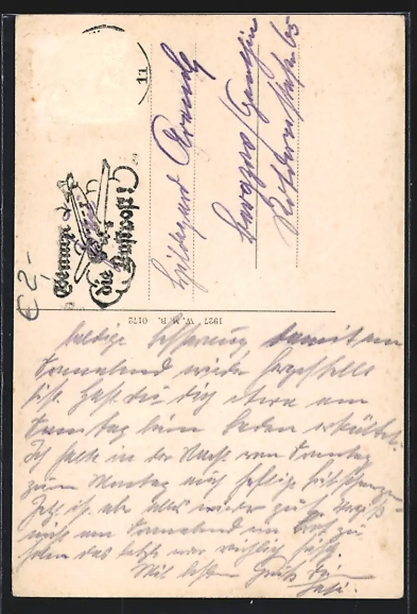 alte Ansichtskarte, gelaufen, Briefmarke entfernt, Stempelspur, guter Zustand