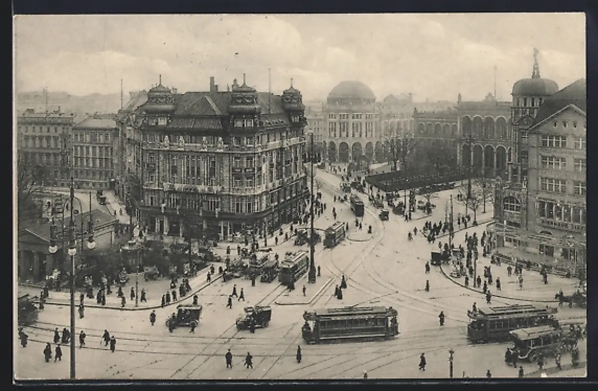 AK Berlin-Tiergarten, Potsdamer Platz mit Strassenbahnen