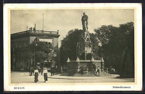 AK Berlin-Tiergarten, Rolandbrunnen mit Passanten