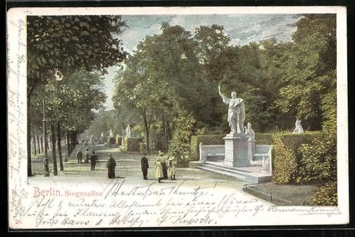AK Berlin-Tiergarten, Siegesallee, Spaziergänger, Denkmäler, Parkanlage