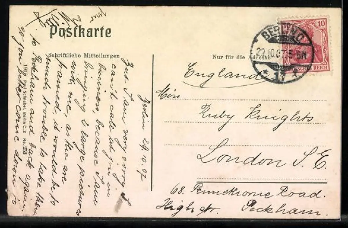 gelaufen 1907, Eckknick u. Abriebspur unten re., Stempelspur, guter Zustand